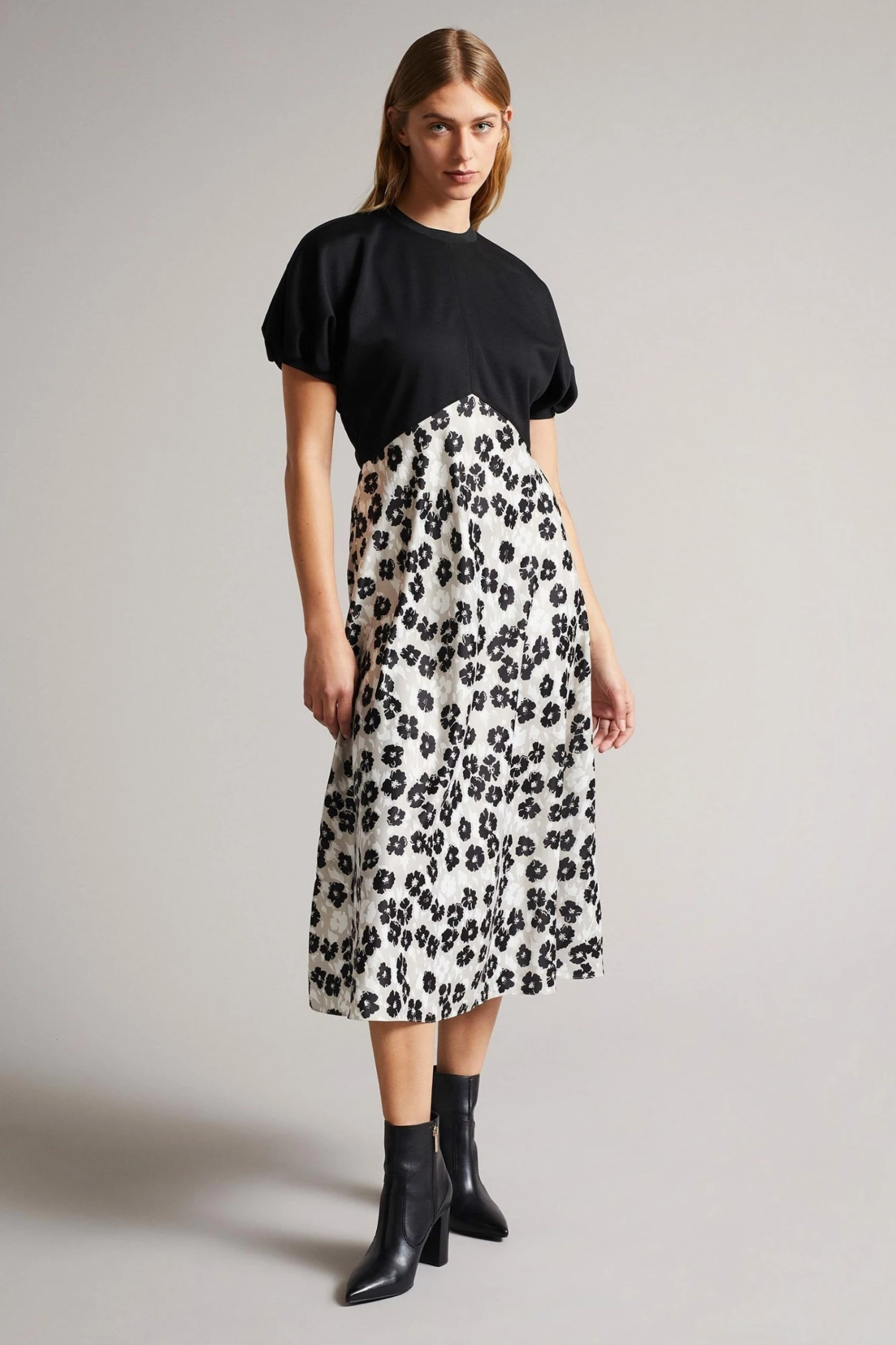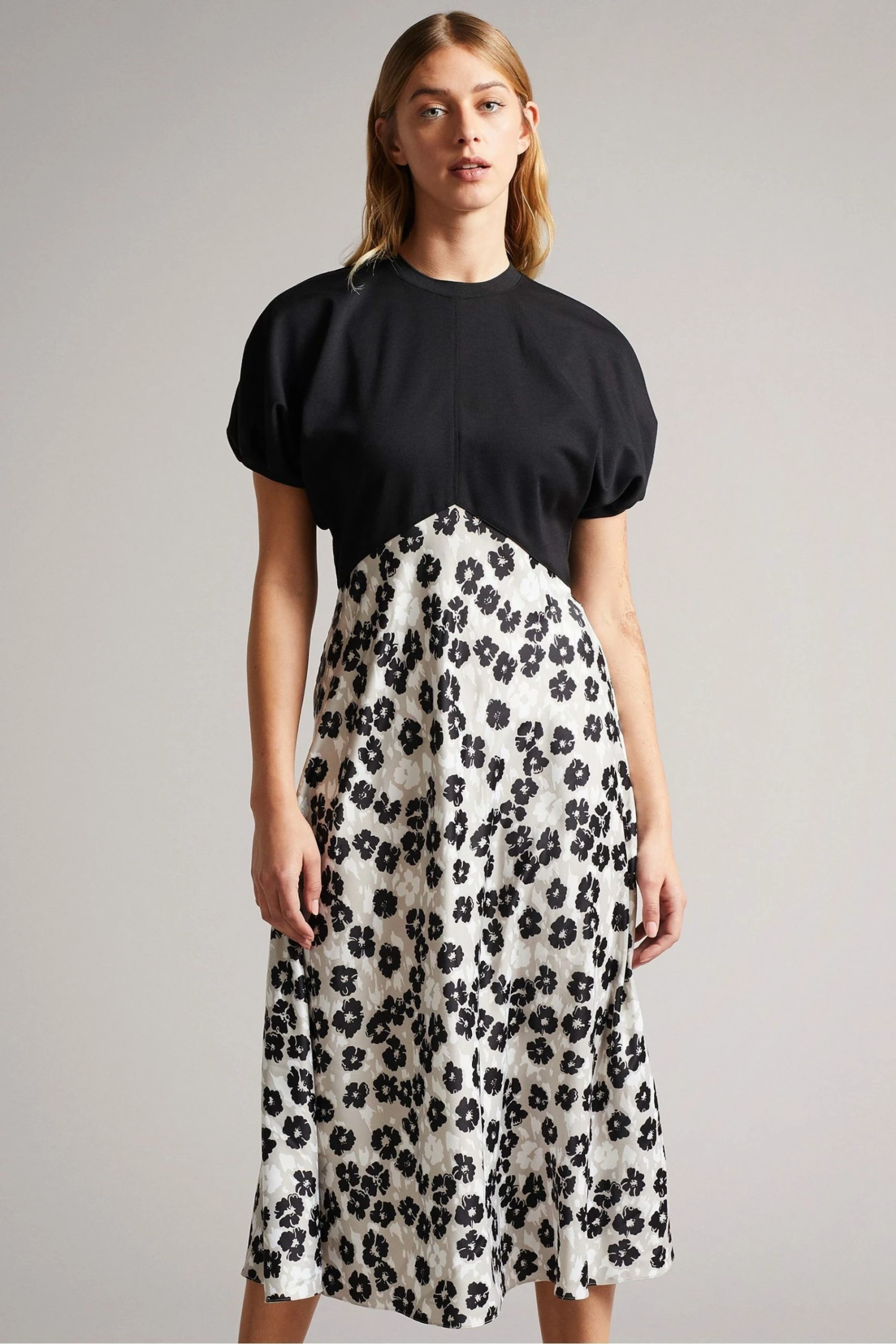 Bursting with new season style, this Gwiana midi dress from Ted Baker is designed with an empire silhouette for an effortlessly chic look. In a monochrome colourway with puff sleeves, round neckline and zip fastening.