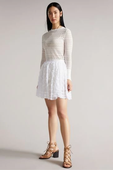 A pretty style for your wardrobe, this Halvy mini skirt is designed in a flattering A-line shape with micro ruffle details and textured elements. Finished with concealed fastening.