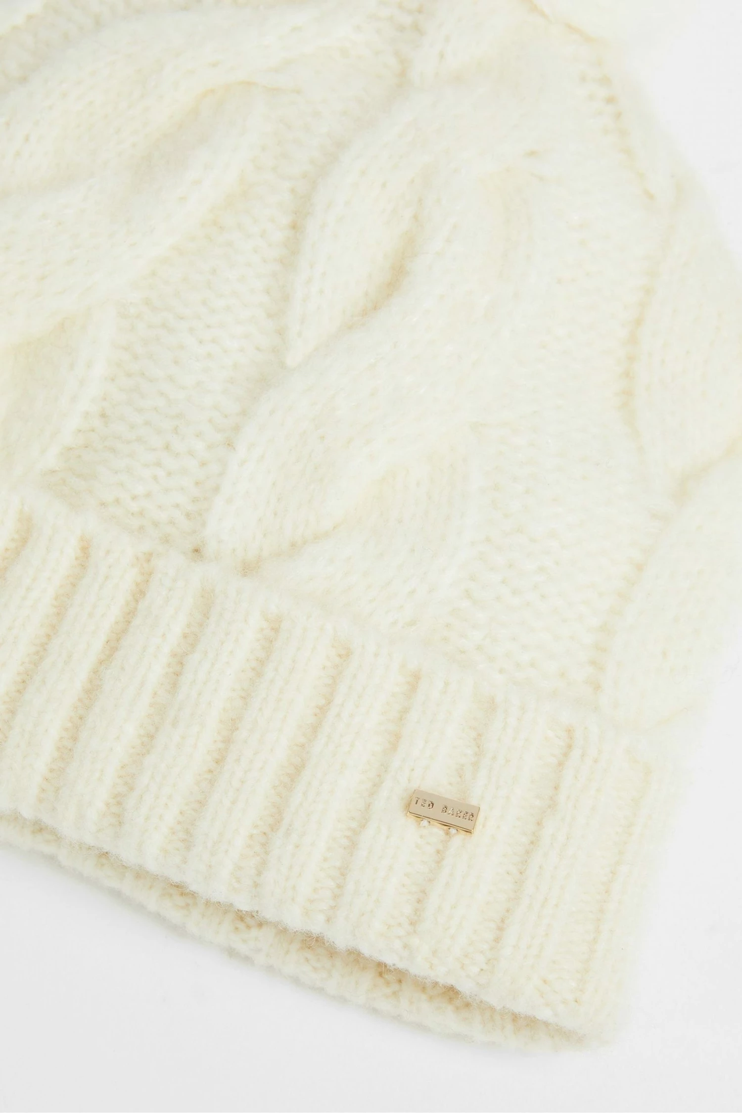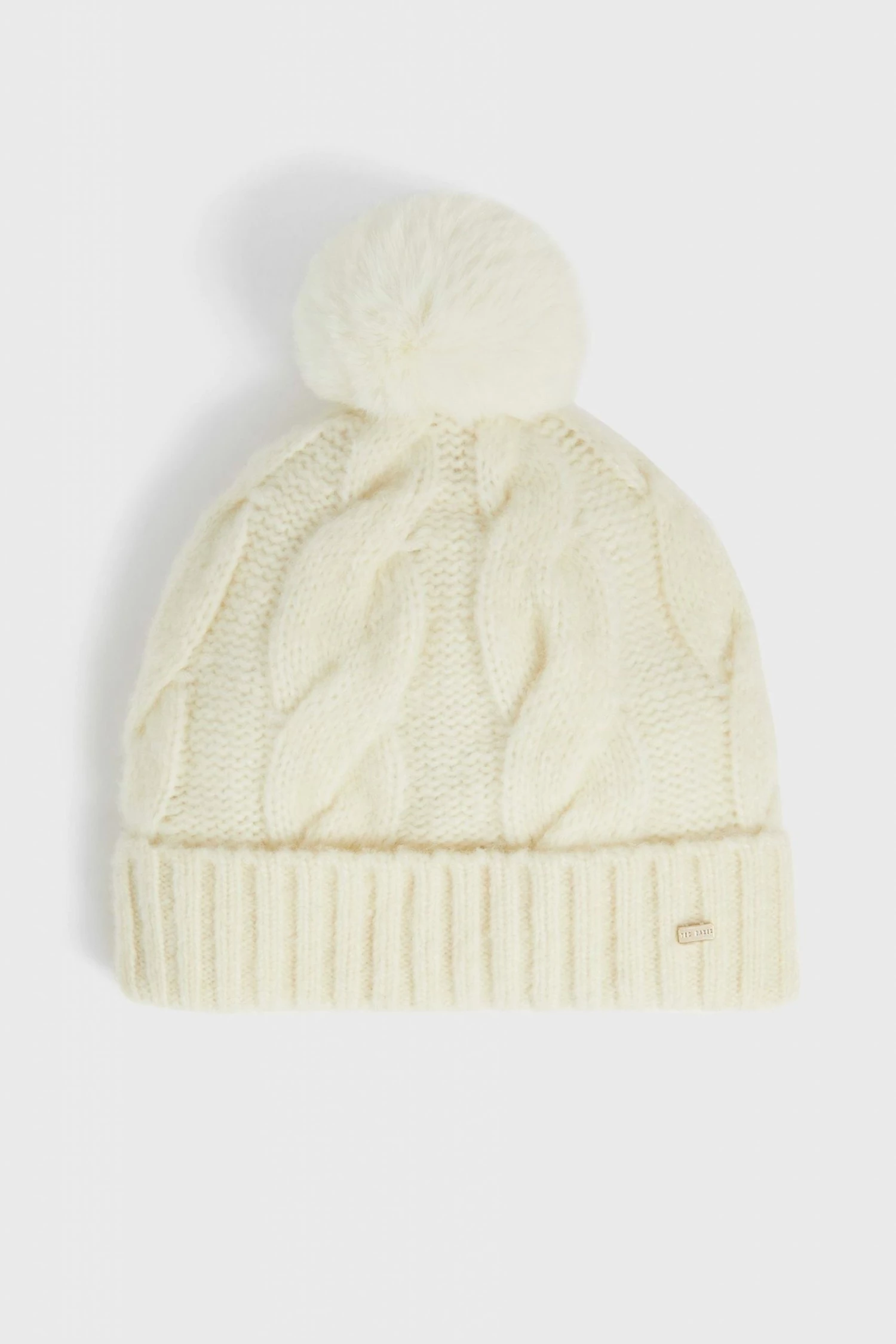 Ted Baker Hannss Chunky Cable Knitted Cream Bobble Hat