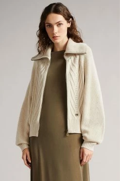Knitwear season is upon us again luckily, JORDIYN will make sure you re prepared. A classic, cosy zip-up cardigan, featuring arrow-shaped stitch details and a wide collar for extra style points. A versatile piece you ll be reaching for through to spring.