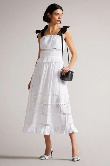 Ted Baker White Promis Midi Dress With Grosgrain Straps